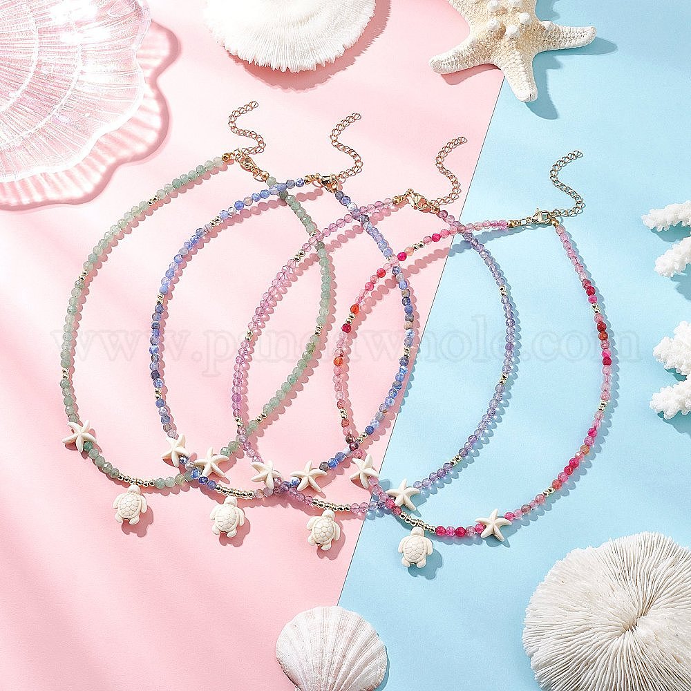 4 шт. 4 цвета лето натуральный зеленый авантюрин и аметист и окрашенный агат ограненные круглые бусины окрашенная синтетическая бирюза морские черепахи кулон ожерелья, золотые