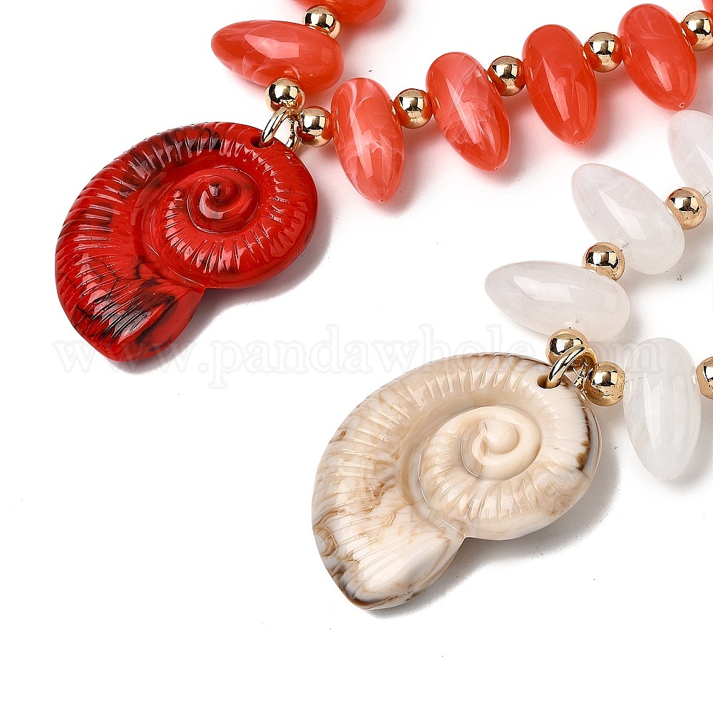 Летние пляжные ожерелья из пластиковых бусин CCB с подвеской в форме раковины из смолы и цепочками с литой отделкой, золотые