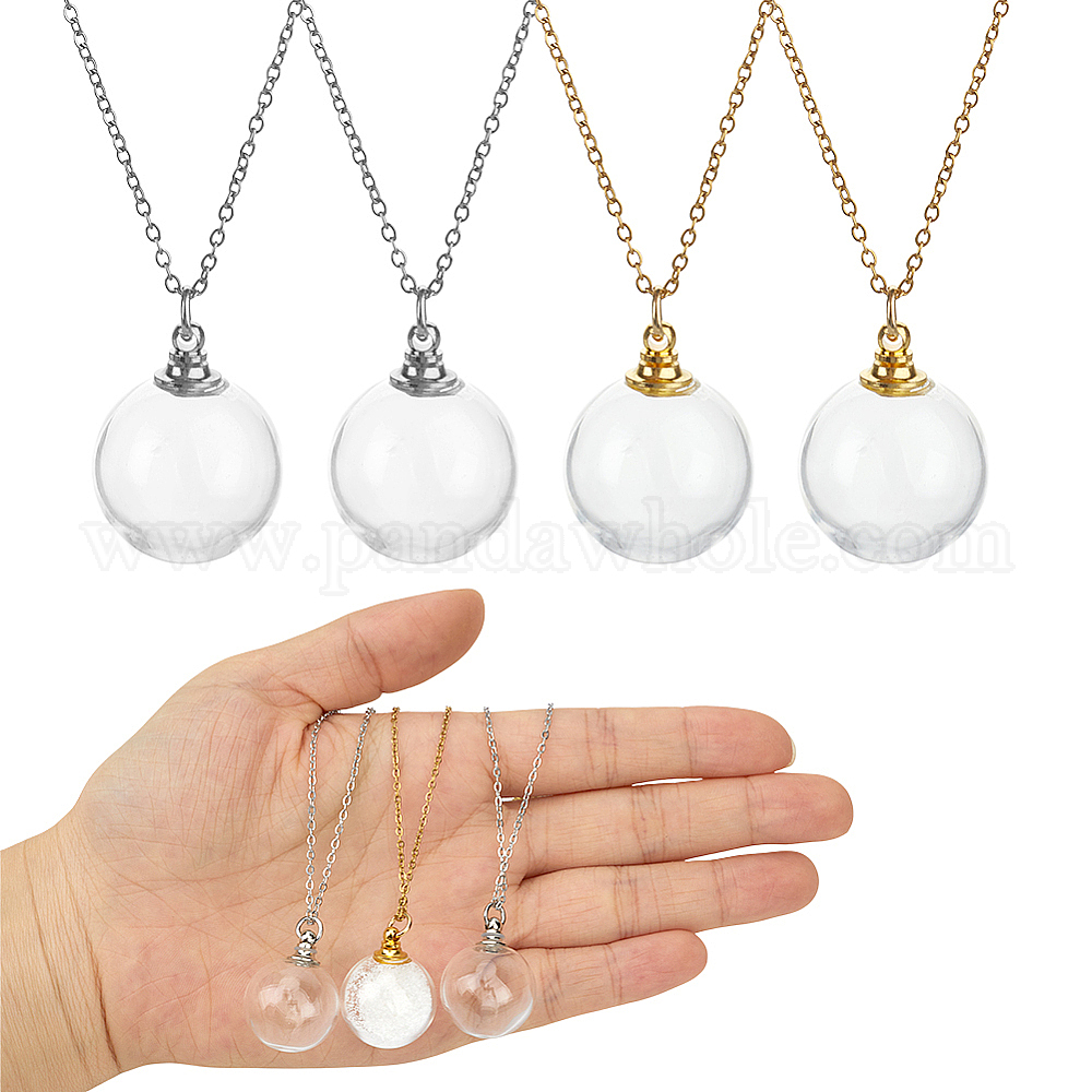 • Золотой & Цвет Нержавеющей Стали 4 шт. 2 цветная прозрачная стеклянная открывающаяся круглая бутылка, урна для хранения пепла для домашних животных 304 ожерелья из нержавеющей стали с цепочкой, золотые и нержавеющая сталь цвет, 16.54 дюйм (42 см), 2 шт / цвет