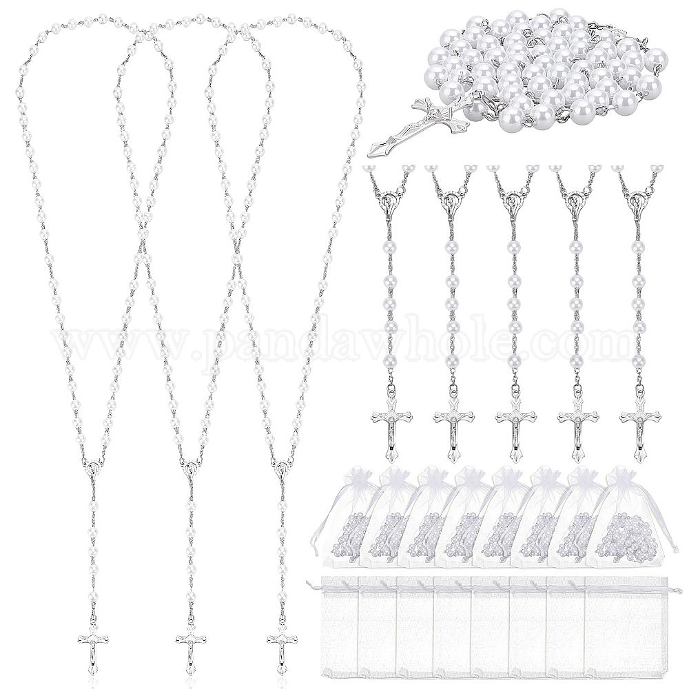 • Платина 30шт. кулоны в виде креста Иисуса и Девы Марии из сплава и белого круглого АБС-пластика с имитацией жемчуга, четки, с 30шт. мешочков из органзы, платина, 31.10 дюйм (79 см)