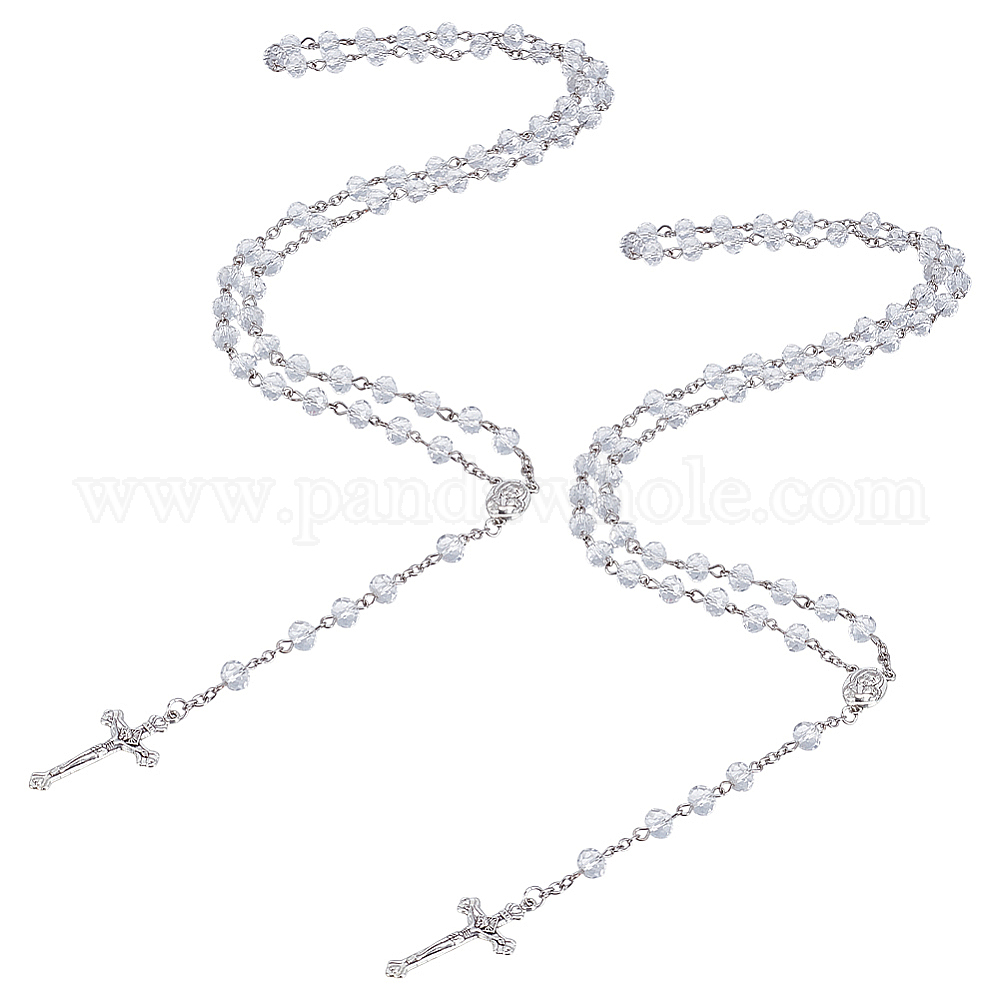 2 шт. граненые рондельные четки из прозрачного стекла, ожерелья с подвеской в виде креста Иисуса из цинкового сплава