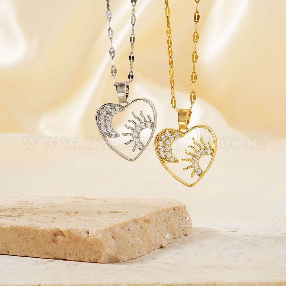Великолепное латунное сердце с микропаве из прозрачных кубических цирконий с подвеской в виде луны и солнца, элегантные модные ожерелья
