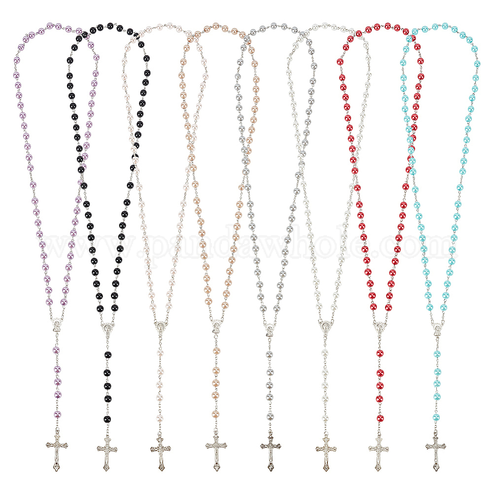 8psc 8 цветные цепочки из сплава и стекла, четки из бусин, Подвески в виде креста Девы Марии, платина