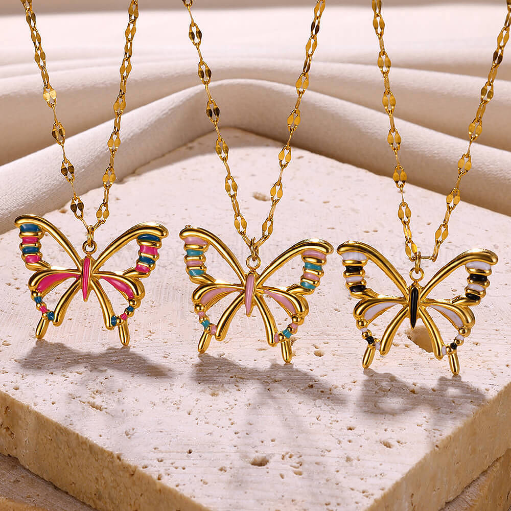 Полые бабочки 304 ожерелья с эмалированным кулоном из нержавеющей стали, золотые