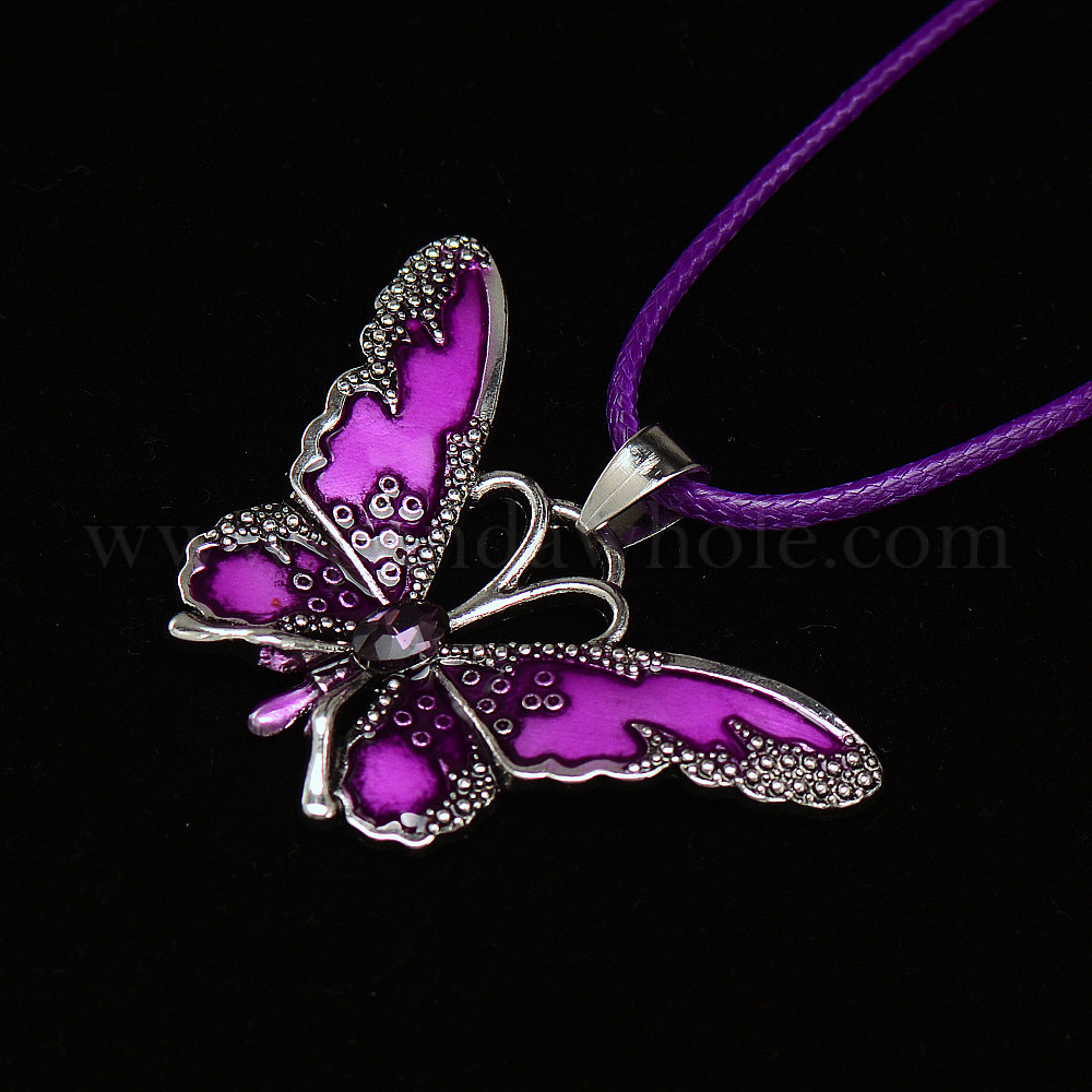 Ожерелья из полиэфирного шнура/вощеного шнура с подвеской в виде бабочки из сплава эмали, платина