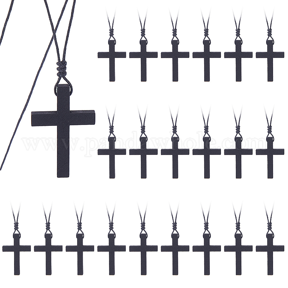 30 шт. вощеный хлопковый шнур деревянные крестики-подвески ожерелья