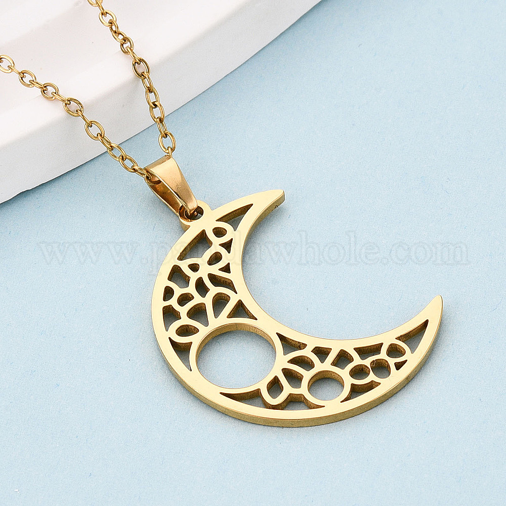 304 подвесные из нержавеющей стали ожерелья, полый полумесяц, ионное покрытие (ip)