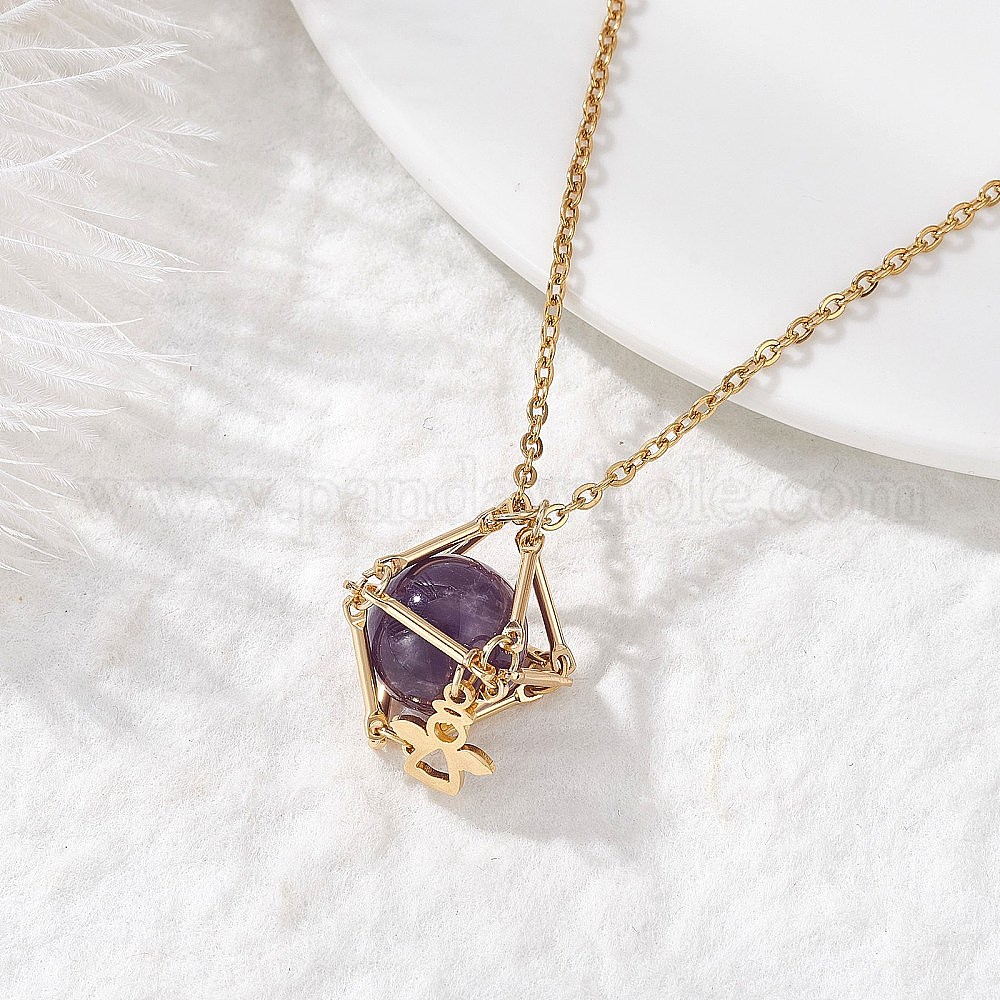Латунный мешочек в технике макраме с натуральными камнями внутри и 304 подвесками из нержавеющей стали для женщин, золотые