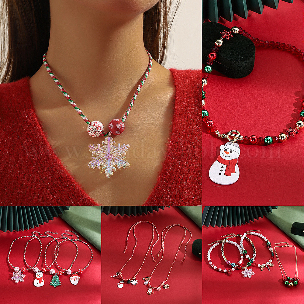 Рождественский сплав, акриловая смола, эмалированные подвески, полиэстеровый шнур, ожерелья