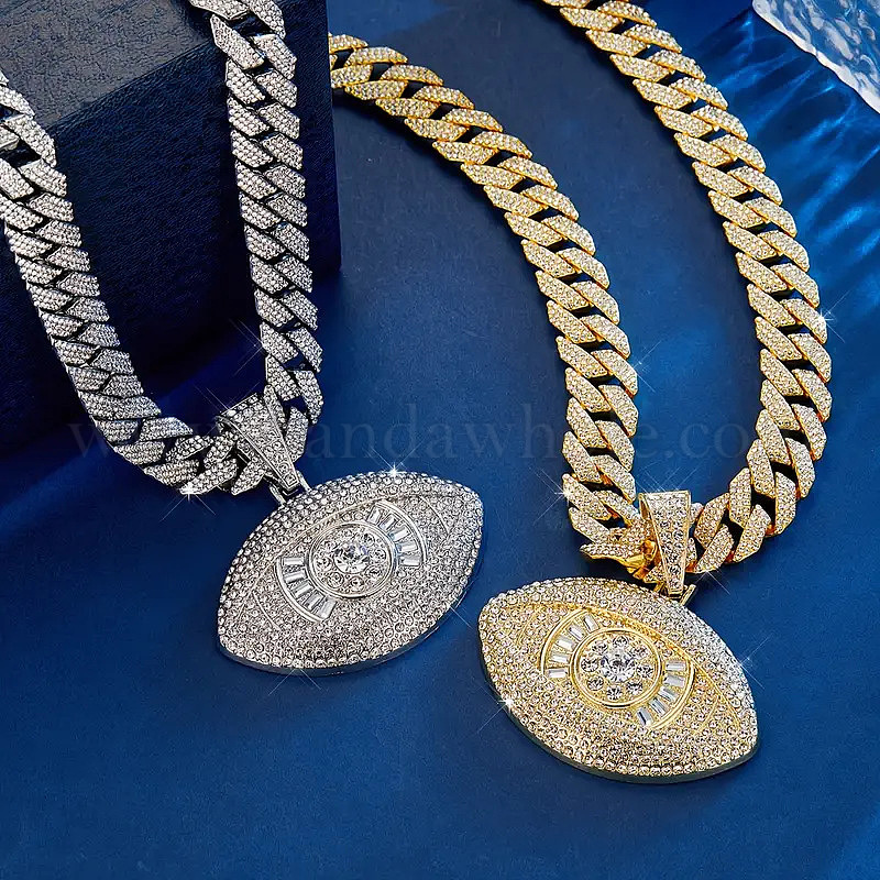 Мужские кубинские звенья цепи с подвеской от сглаза из цинкового сплава, полностью украшенной кристаллами и стразами