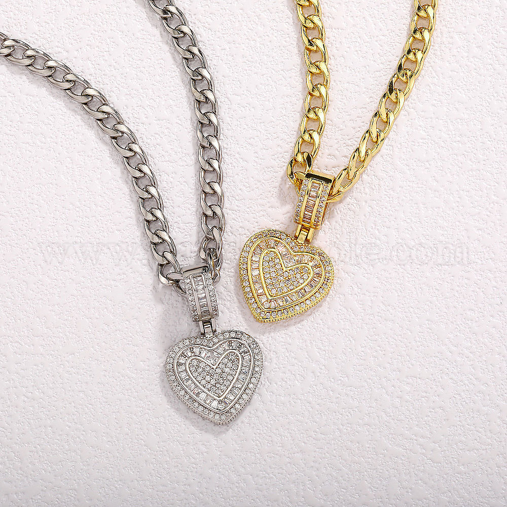 Женские колье-цепочка с подвеской в виде сердца/креста из латуни с микропаве из кубических цирконий