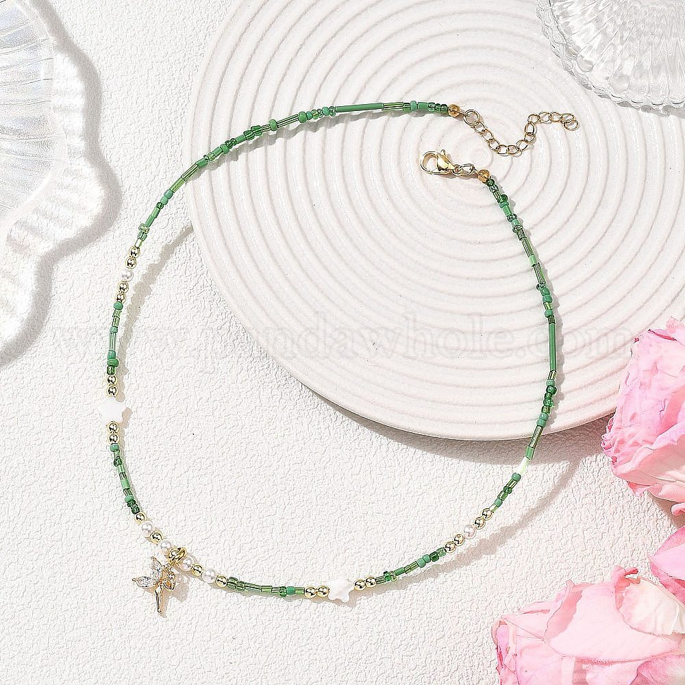 Подвеска в виде феи из латуни с прозрачными кубическими цирконами, круглыми ракушками, жемчугом и цветами, ожерелья из натуральных пресноводных ракушек и стеклянных бусин для женщин, золотые