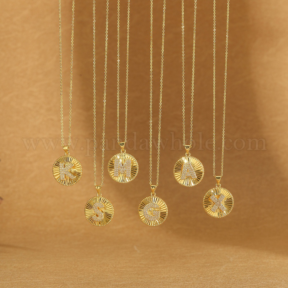 Женские колье с инициалами из латуни с микропаве из прозрачных кубических цирконий, золотые