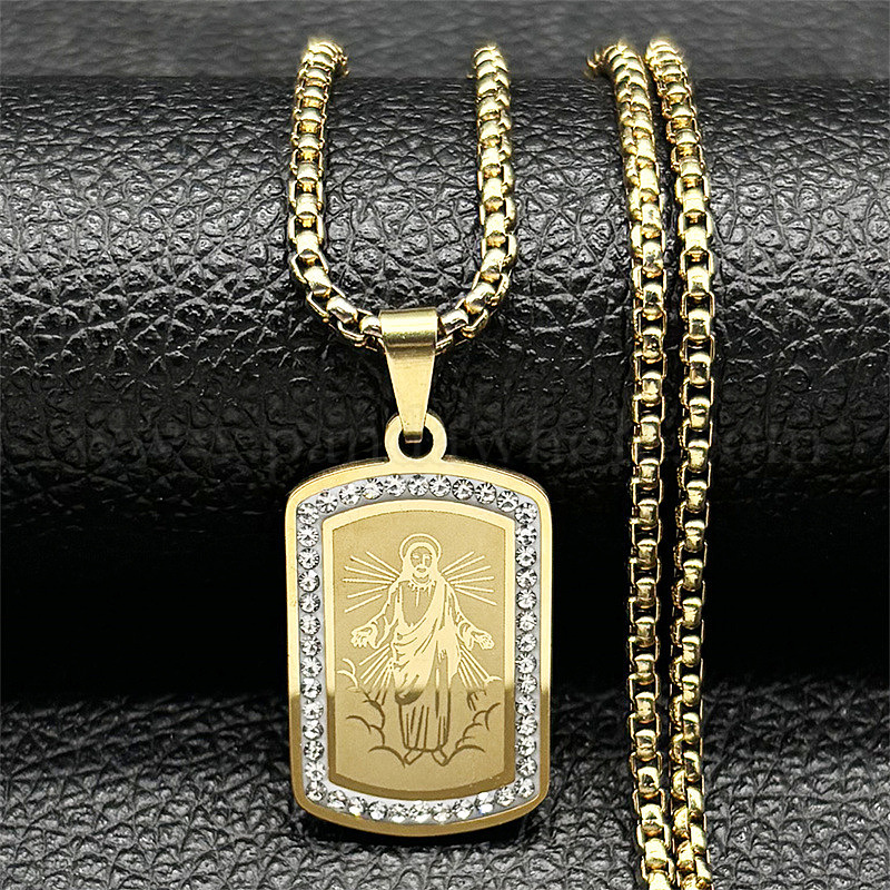 304 Мужские ожерелья с подвеской из нержавеющей стали с кристаллами и стразами