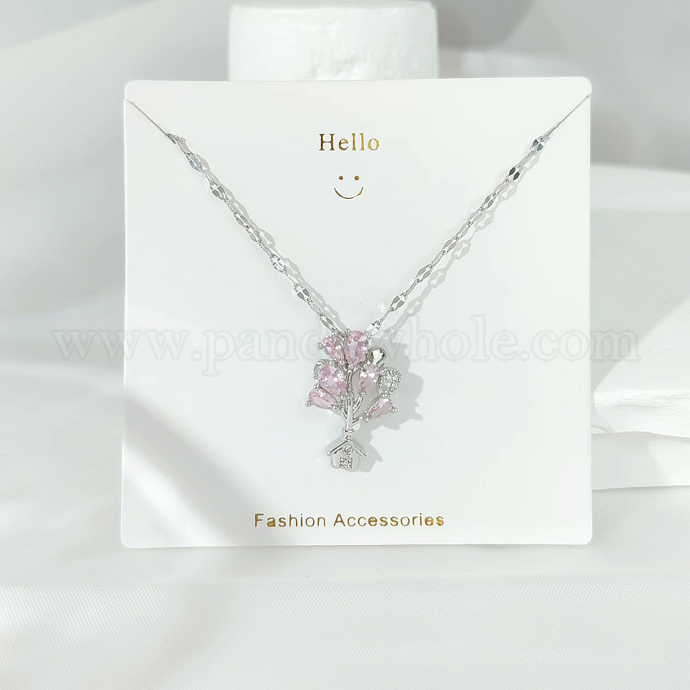 304 ожерелья с подвесками из нержавеющей стали с кубическими циркониями, цвет нержавеющей стали