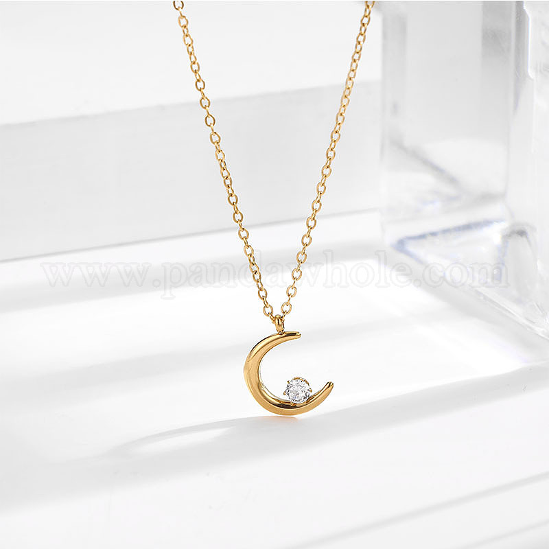304 Женские подвески-луны из нержавеющей стали с прозрачными кубическими циркониями