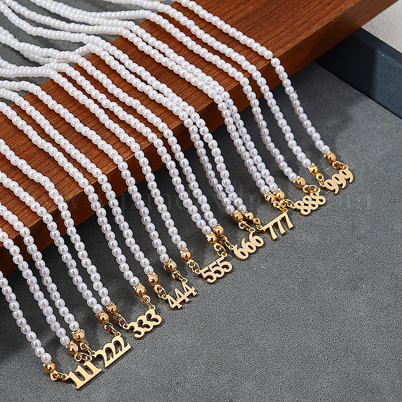 Ожерелья из белого круглого бисера с подвеской в виде цифры из сплава и искусственного жемчуга для женщин