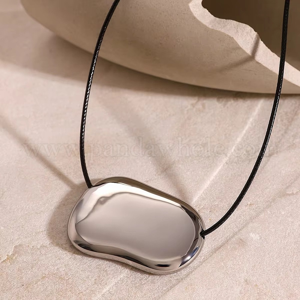 304 подвеска в виде боба из нержавеющей стали, регулируемые черные вощеные шнуры для женщин