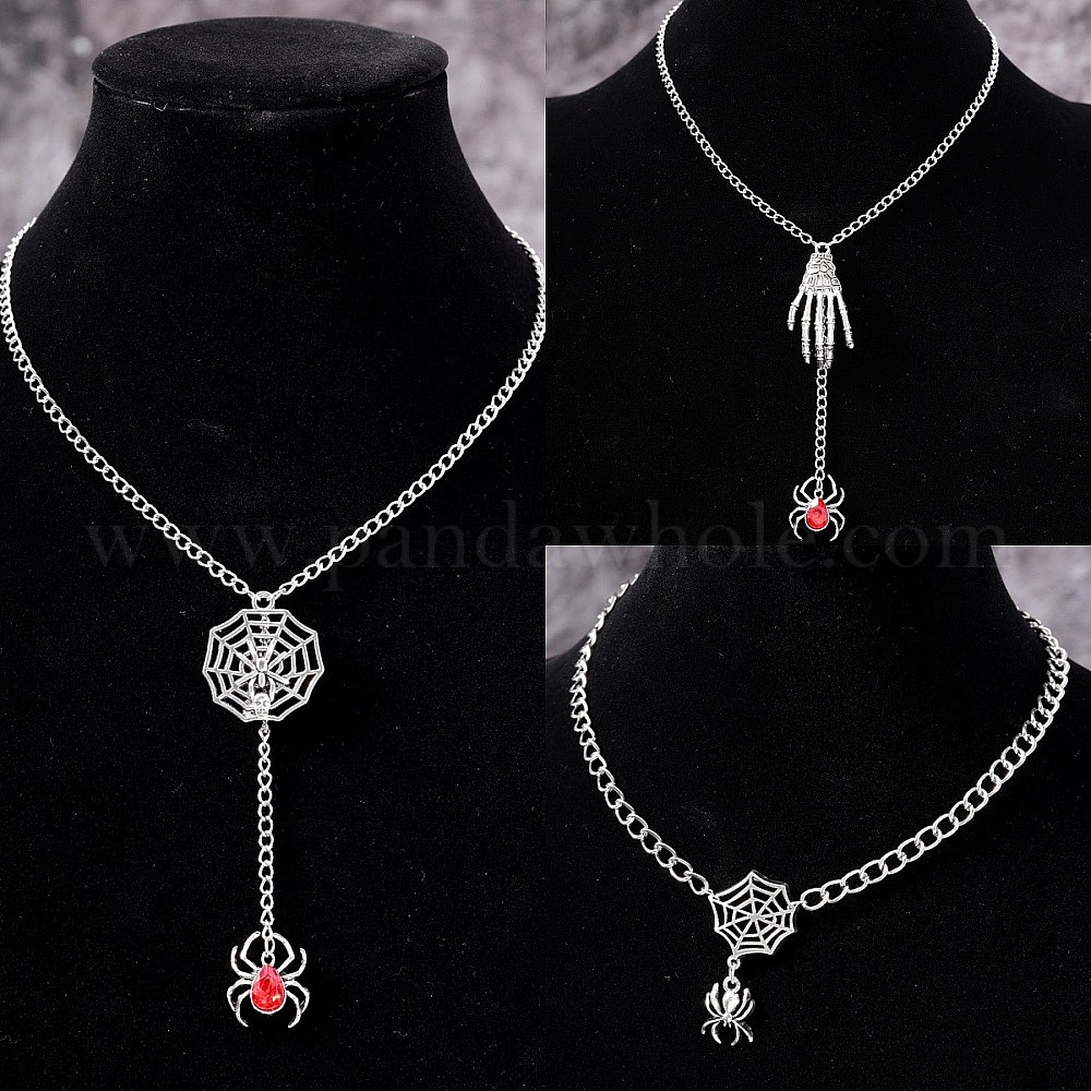 Ожерелья с подвесками из цинкового сплава и железных страз на Хэллоуин, платина
