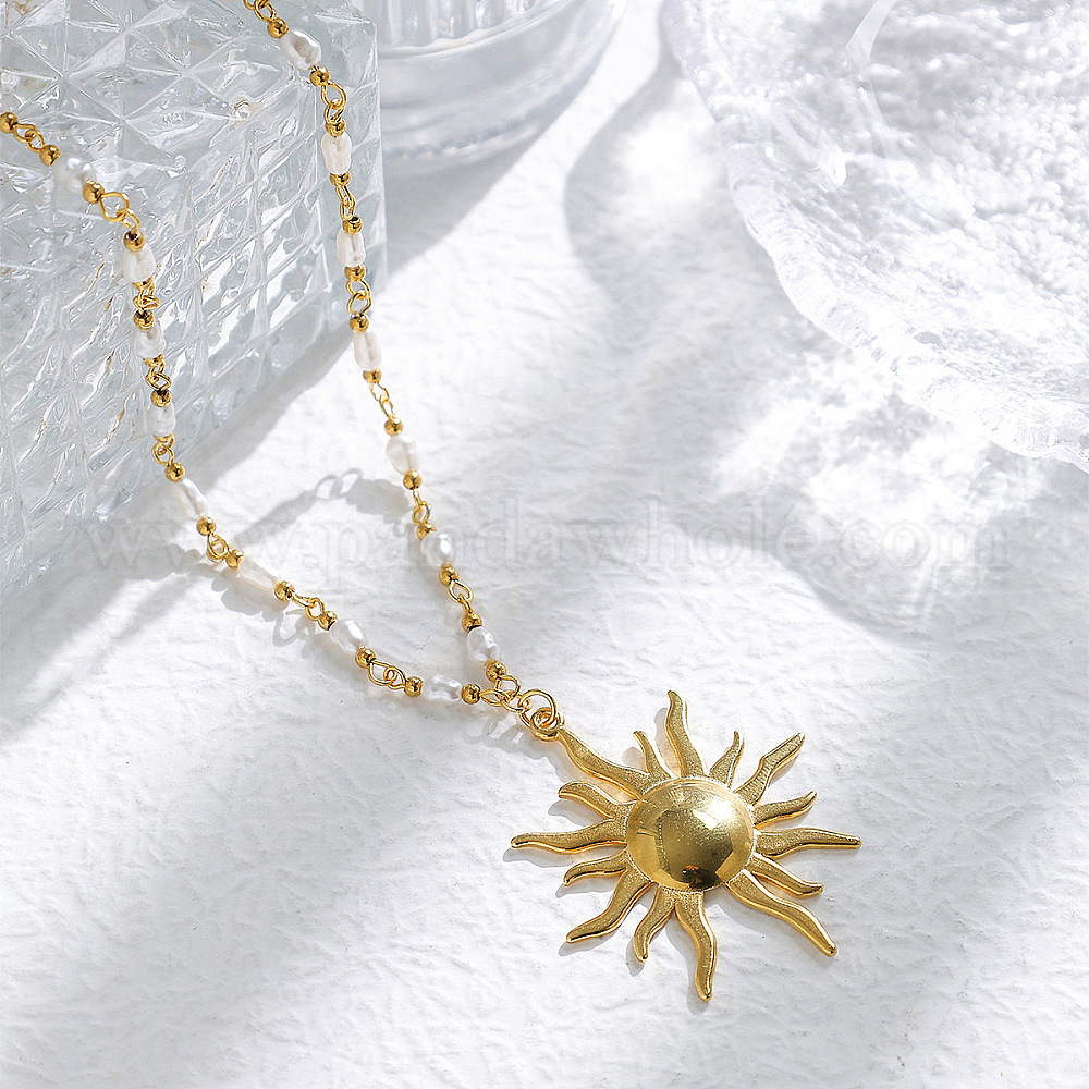 304 ожерелья с подвеской в виде солнца из нержавеющей стали с искусственным жемчугом ABS, без свинца, без кадмии и без никеля