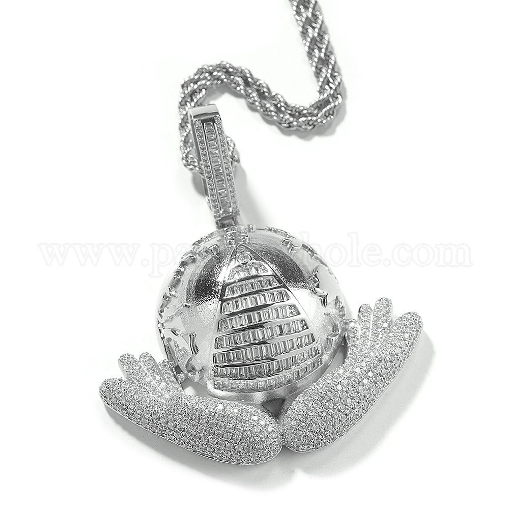 Кулон из прозрачного кубического циркония с микропаве из латуни и цепочкой из хирургической нержавеющей стали для мужчин.