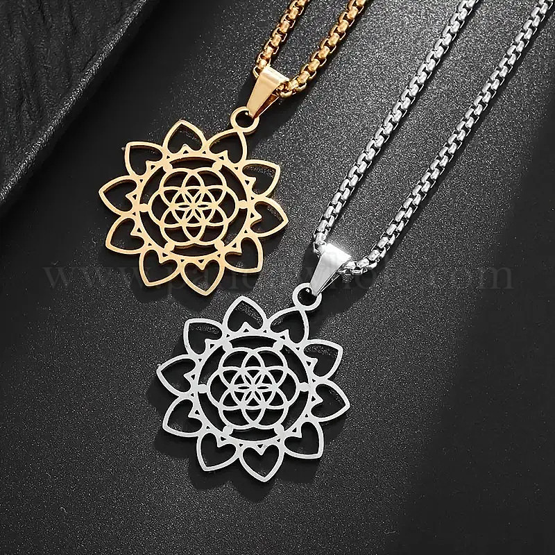 • Золотой 201 подвески в виде цветка лотоса из нержавеющей стали с лазерной резкой, золотые, 23.62 дюйм (60 см)