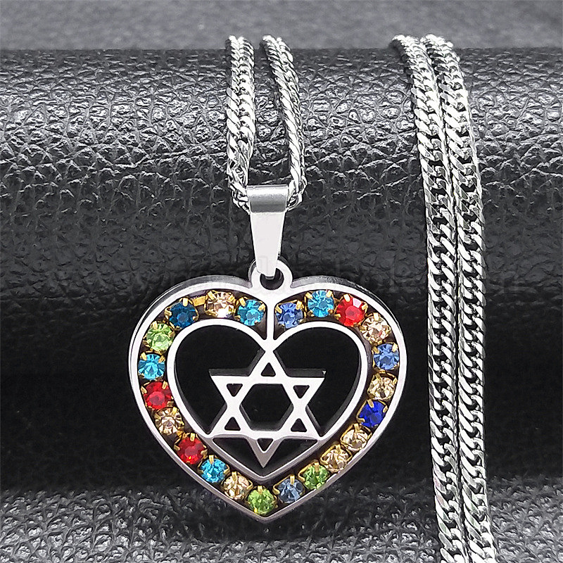 201 подвеска в форме сердца из нержавеющей стали с разноцветными стразами и звездой Давида