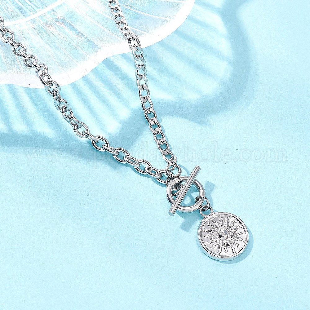 • Нержавеющая Сталь Цвет 201 подвеска в виде солнца из нержавеющей стали 304 витая цепочка из нержавеющей стали, ожерелья и цепочки, не тускнеет, цвет нержавеющей стали, 18.50 дюйм (47 см)