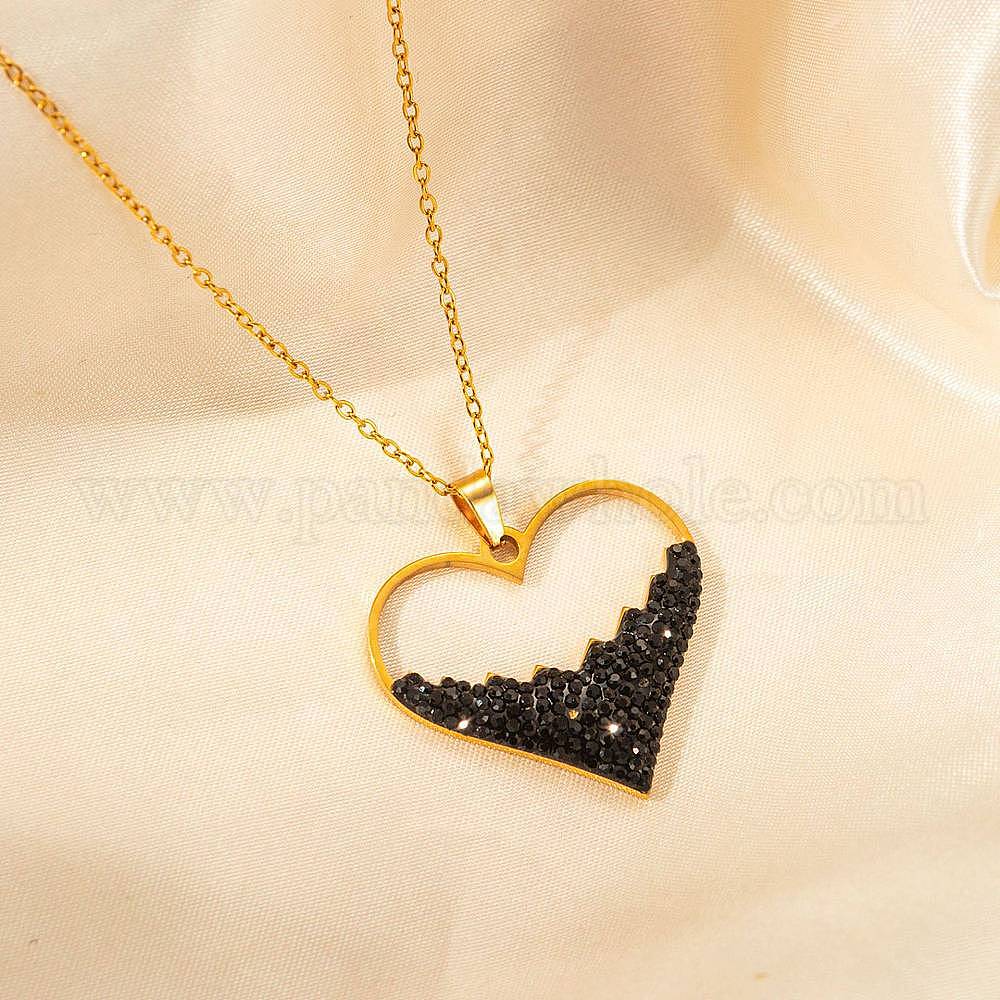 304 ожерелья из нержавеющей стали со стразами для женщин, сердце, золотые