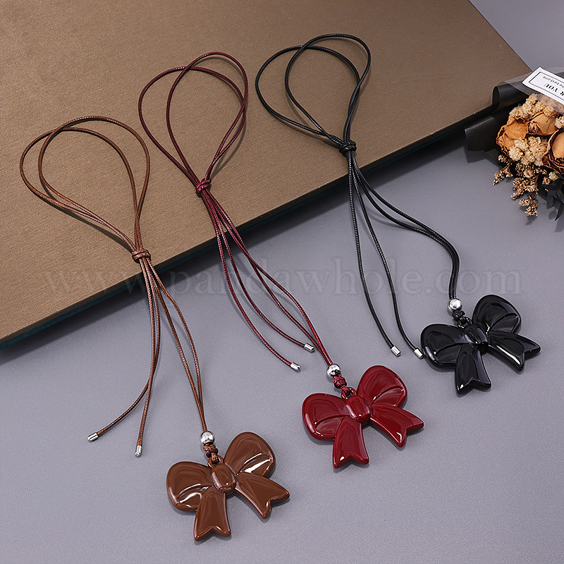 Кулон в виде бантика из смолы, регулируемый черный вощеный шнурок, ожерелье для женщин (039EAC)
