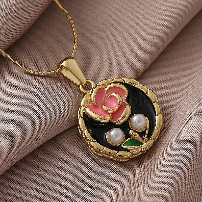 316 хирургическая нержавеющая сталь, эмаль, с имитацией жемчуга, плоские круглые подвески с цветком для женщин, золотые