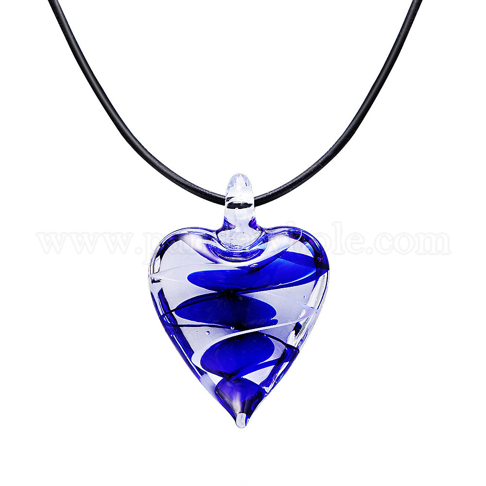 • Средно-синий Женские ожерелья с подвеской в виде стеклянного сердца из черного вощеного шнура, светло-синий, 17.72 дюйм (45 см)