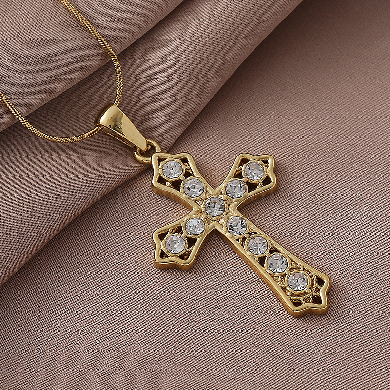 Винтажные 304 ожерелья с подвеской в виде креста из нержавеющей стали с прозрачным стеклом для женщин