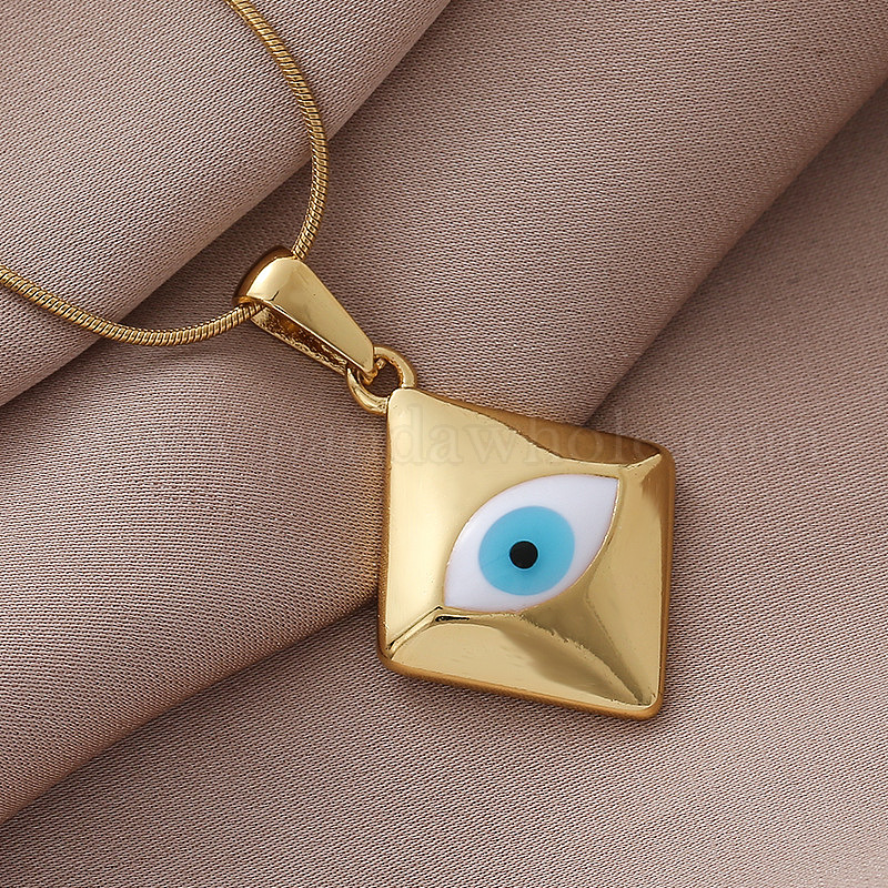 Мода 304 ожерелья с подвеской в виде ромба из нержавеющей стали с белой эмалью от сглаза