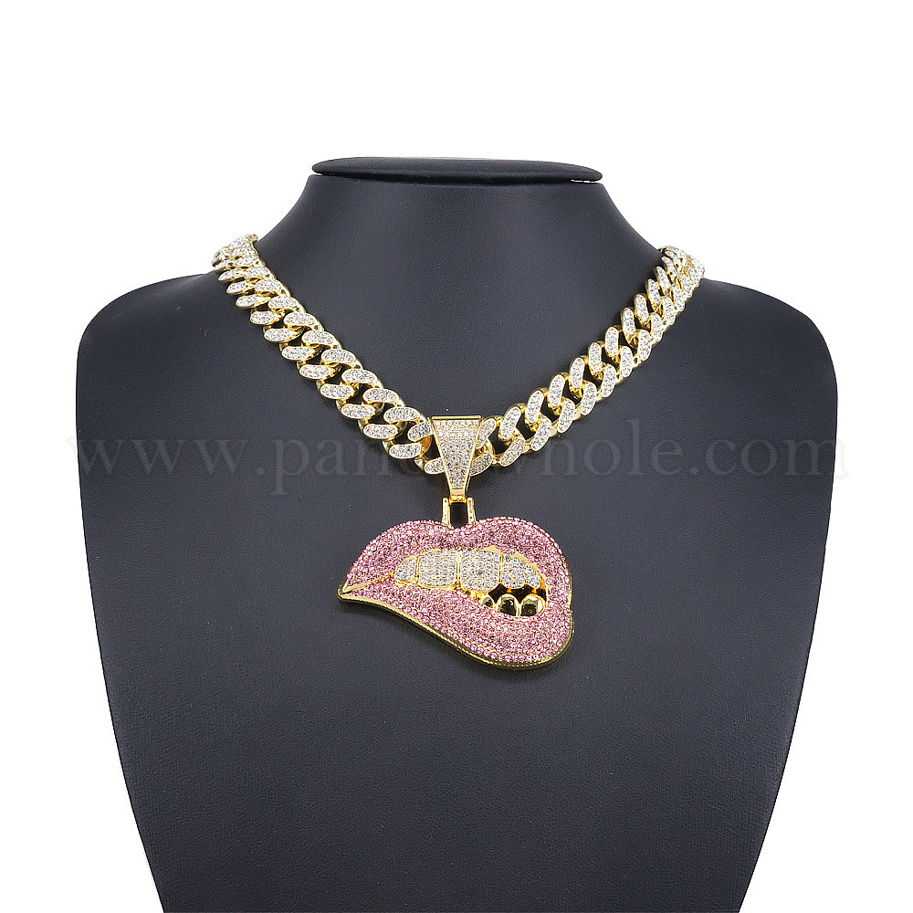 Кулон в виде губы из цинкового сплава, полностью украшенный стразами, цепочка в кубинском стиле для мужчин.