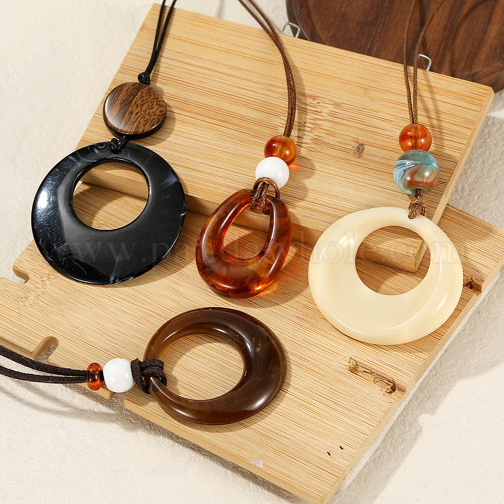 Кольцо из смолы, подвеска в форме капли, длинные цепочки с вощеным шнурком.