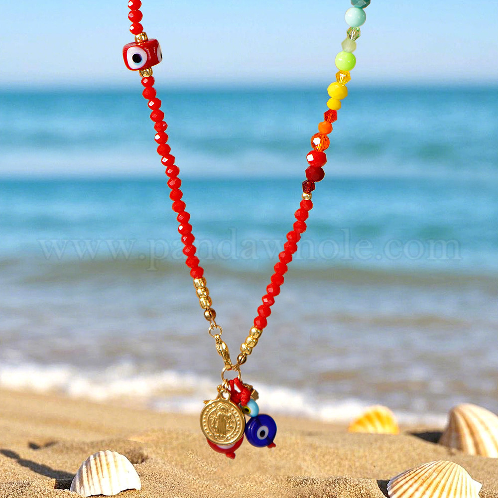 • Разноцветный Бусы из бисера с подвеской в виде стеклянного сглаза, красочный, 16.54 дюйм (42 см)