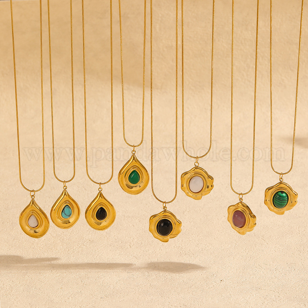 Подвеска в виде цветка с драгоценным камнем в форме капли 304 цепочка из нержавеющей стали для женщин, золотые