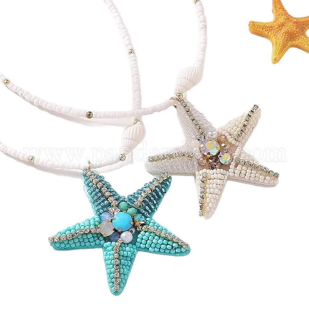 Ракушка в виде морской звезды с подвеской из стразов, белые стеклянные бусы, ожерелье для женщин
