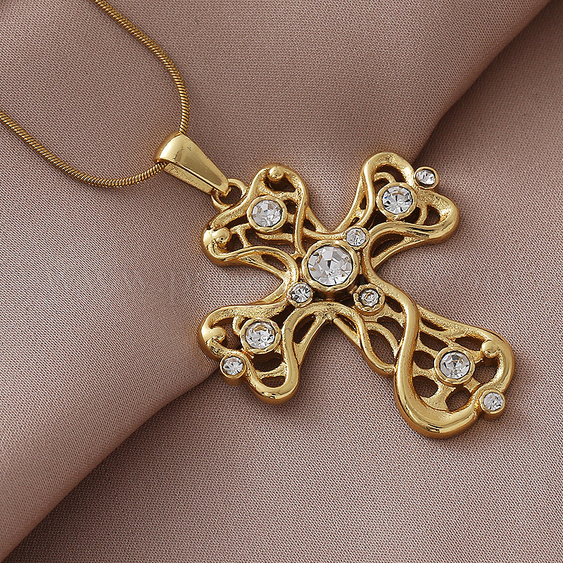Винтажные 304 ожерелья с подвеской в виде креста из нержавеющей стали с прозрачным стеклом для женщин