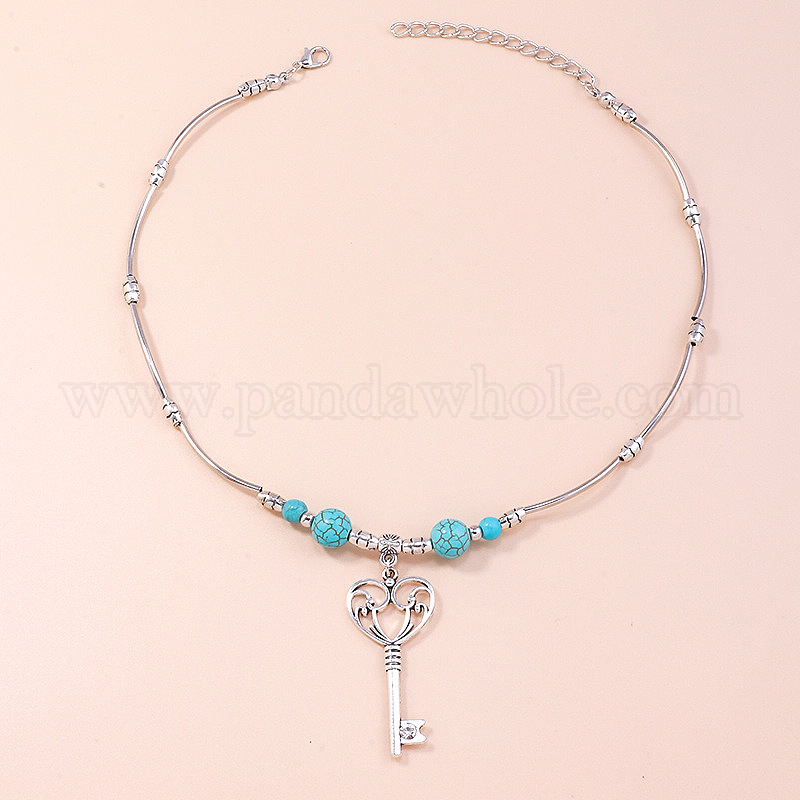 Ожерелья из сплава с подвесками из синтетической бирюзы, ключ