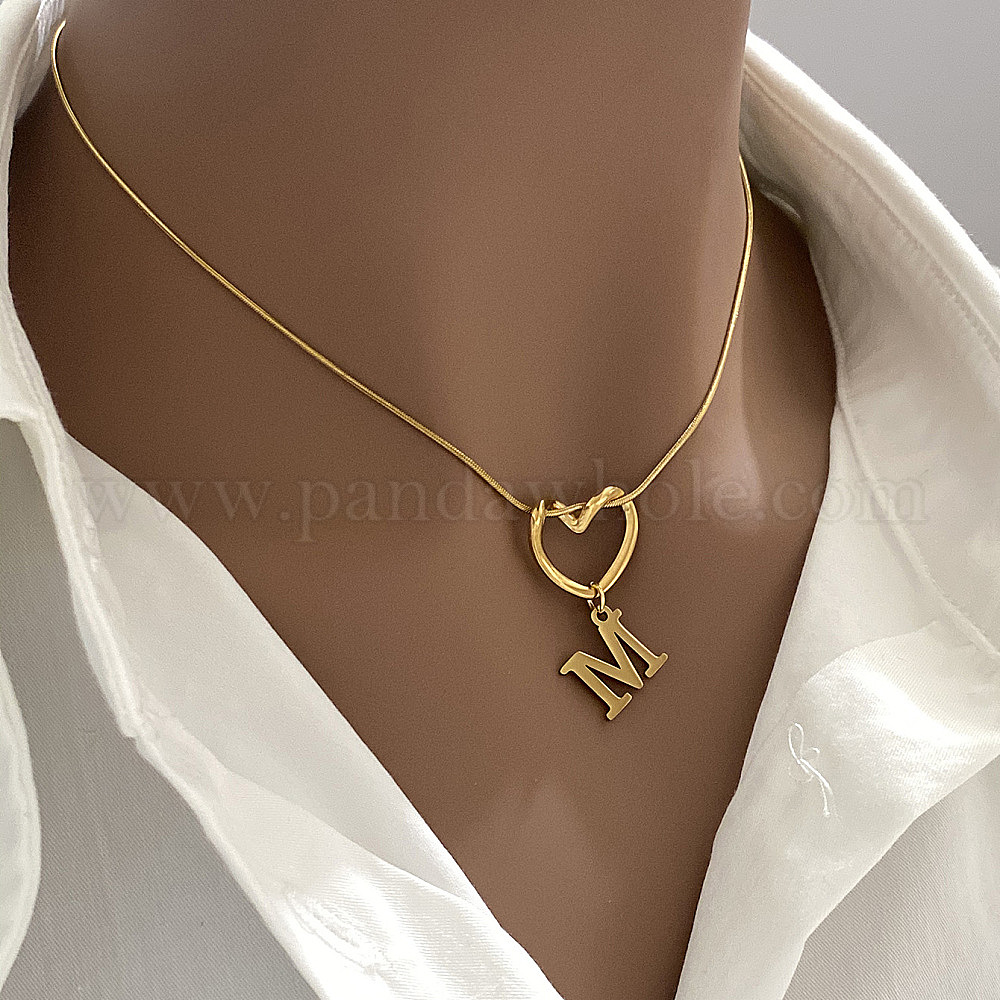 • Letter M 304 Подвеска в виде сердца из нержавеющей стали с инициалом для женщин, золотые, Буква М, 15.75 дюйм (40 см)