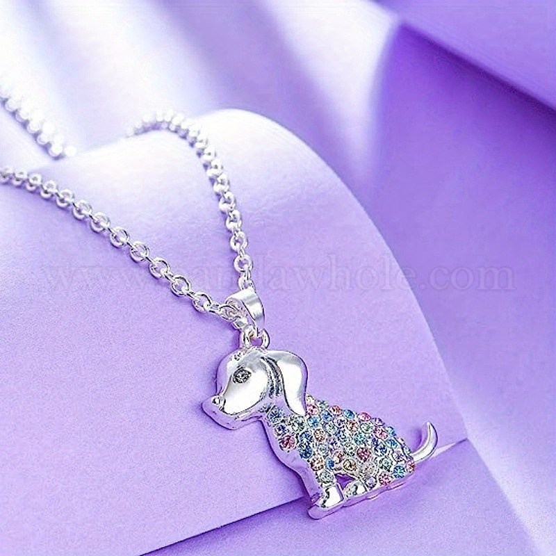 • Платина Ожерелье с милым кулоном в виде собачки из сплава, украшенное разноцветными стразами., платина, 17.72 дюйм (45 см)