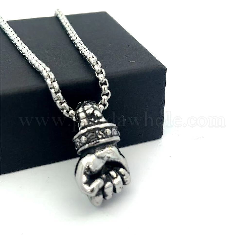 • Нержавеющая Сталь Цвет Минималистичный хип-хоп 304 подвески в виде кулака из нержавеющей стали для мужчин, не тускнеет, цвет нержавеющей стали, 23.62 дюйм (60 см)