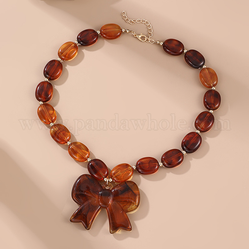 Овальные бусы из бисера с подвеской в виде бантика из смолы и цепочками из сплава для женщин., золотые