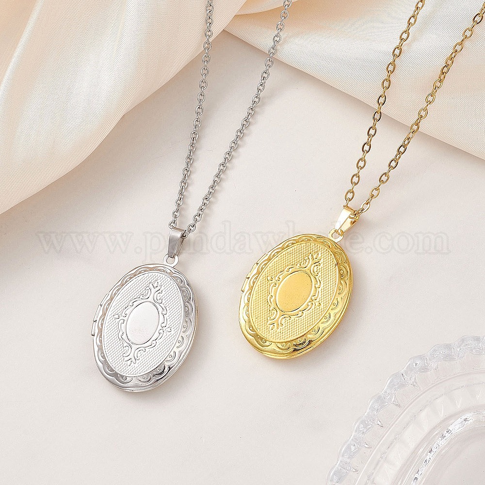 2шт. 2 цвета латунный овальный кулон-медальон на цепочке, с 304 кабельными цепочками из нержавеющей стали