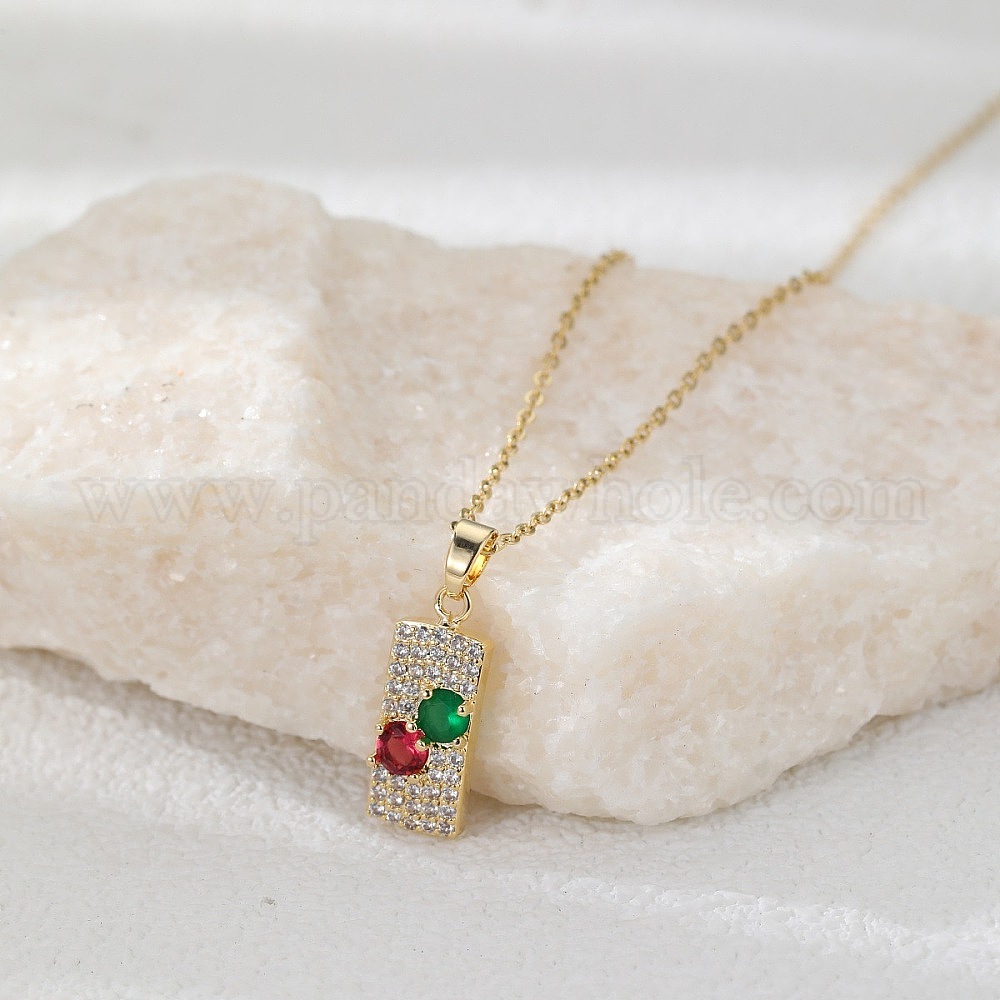 Подвеска-колье из латуни с прямоугольным кулоном, украшенным разноцветными кубическими циркониями.