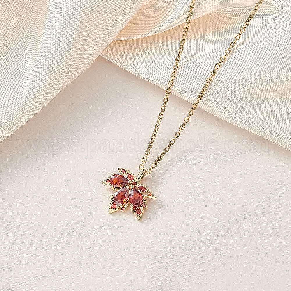 Подвеска в виде кленового листа из латуни с инкрустацией кубическим цирконием 304 цепочка из нержавеющей стали для женщин, золотые (03A6Z7)