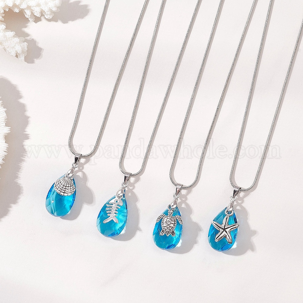Подвеска в виде капли из морского сплава и граненого стекла, латунная круглая цепочка-змейка для женщин, глубокое синее небо, разнообразные