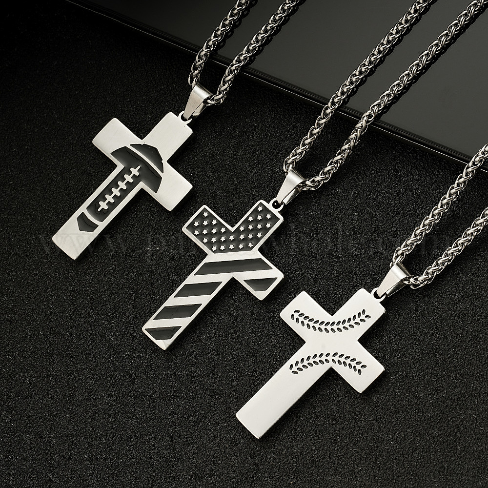 201 Подвеска в виде черного креста из нержавеющей стали с эмалью, цепочка с пшеничным колосом